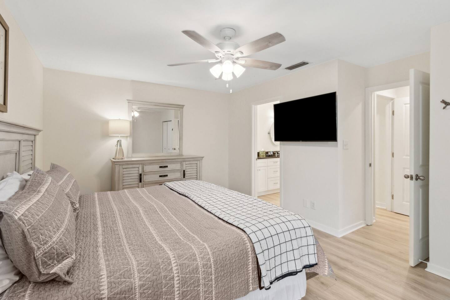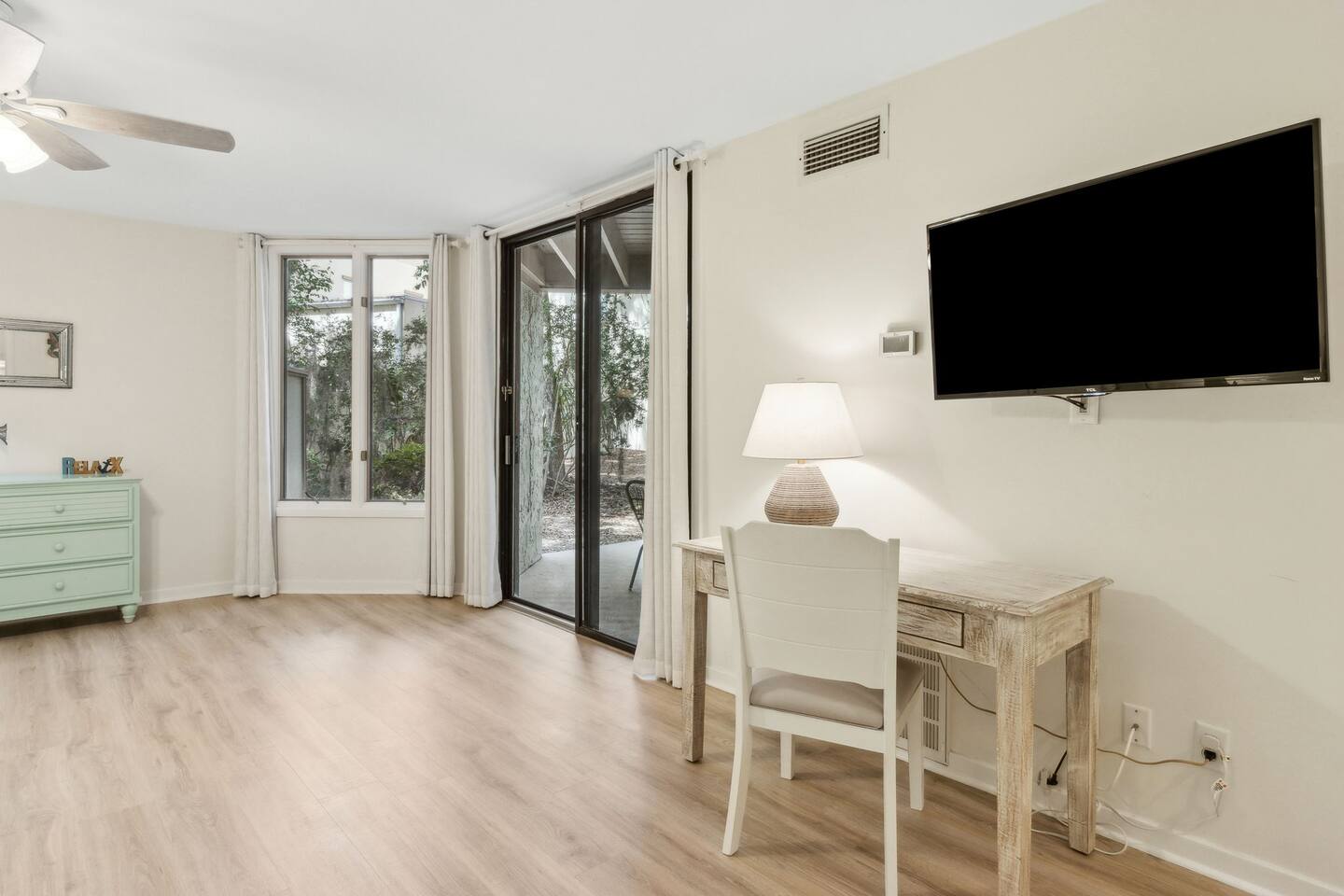 Freshly renovated and thoughtfully decorated, this Courtside Villa Condo invites travelers to come and rest awhile on beautiful Amelia Island. This one-level condo is on the ground floor and offers two bedrooms, each with their own attached full bathroom and patio. Just a short 8-min stroll to the beach, this condo includes a collapsible wagon and 4 beach chairs! The Plantation offers access to multiple restaurants, pools, beach, bike paths, and more, and is just minutes from downtown Fernandina Beach! This beautiful condo comes with a private washer/dryer, a flatscreen TV in the family room and each bedroom, free WiFi, two private balconies, and even a community pool! The closest beach access is about 500 yards or an 8-minute walk away. The 5-star Verandah Restaurant is a 5-minute walk! ☀ Located within Omni Amelia Island Plantation ☀ 1 min walk to community pool 3 min walk to par-3 golf course, Little Sandy 5 min walk to Verandah Restaurant 8 min walk to beach 15 min drive to downtown Fernandina Beach Experience Amelia Island With Us & Learn More Below! KEY FEATURES: ☀ Sleeps 6 ; 2 bedrooms, 1 king + 2 queen beds ☀ 2 Bathrooms; BOTH are full bathrooms with combo shower/tub ☀ 2 outdoor patios, each with separate entrance from bedrooms ☀ Modern and well-equipped kitchen with seating for 6 guests ☀ High-Speed WiFi and Smart TV entertainment ☀ Community Pool right outside your doorstep ☀ Walking distance to multiple Omni Amelia Island amenities ☆☆ BEDROOMS ☆☆ This updated, bright condo accommodates 6 guests in 2 bedrooms. The master bedroom is fitted with a king-size bed, private closet, and a semi-private bathroom. The master bedroom and bathroom also connect to the washer/dryer, giving you a short walk to clean clothes. The secondary bedroom offers two entrances, one through the family room and the other as a separate, exterior door. The room boasts two queen-sized beds, a flat-screen TV, and a separate patio. This bedroom also serves as a separate work station and includes a desk and chair. ☆☆ BATHROOMS ☆☆ There are two full bathrooms in this home, each of them stocked with all the essentials you need for the duration of your stay. The master bedroom contains a semi-private full bathroom with a two-sink vanity and a shower/tub combination. The secondary, en-suite bathroom features a combination shower and tub along with a single sink, mini fridge, and coffee maker. Worry about nothing with these thoughtfully stocked bathrooms that provide everything you need and more. ☆☆ KITCHEN & LIVING ROOM ☆☆ The bright and airy kitchen is fully equipped with all the appliances, utensils and cookware you need to feel at home. This thoughtfully-designed home provides a separate wet bar area in addition to a separate laundry space. The dining area seats 6 guests at the gorgeous wooden table. The living room is situated right off the kitchen and dining room, and is kitted with a Smart TV, allowing full access to your favorite streaming services. This living space comfortably seats six across a sofa, loveseat, and solo chair. ☆☆ OUTSIDE SPACE ☆☆ The exterior area of this home boasts serene vegetation views via one of two porches. The main porch looks out over Florida greenery, allowing you to relax and unwind in one of the four chairs seated at a table. Grab your coffee and enjoy a peaceful morning on the secondary patio that is only accessible via the secondary bedroom. This patio seats two and is a perfect, quiet spot to wind down for the evening or ease into the morning. ★☆ Book Today & Let Us Take Care Of You In Amelia Island! ☆★ Guest access This property is located within the Omni Amelia Island Plantation property. Guests staying at this updated condo have access to numerous amenities via the Omni Amelia Island Plantation. All Omni amenities are separate from this condo and may incur charges. Other things to note: The Omni Resort controls access to the tennis courts, Omni pool, Oak Marsh Golf Course, and fitness center. Access to these are only for guests of the Omni hotel and not available for guests of this property. For specific details and alternatives, please message the host. By booking, you accept responsibility for any damage/extra cleaning caused during the stay. Please be courteous as we aim to share experiences of Amelia Island with many guests for years to come. Please note we provide enough supplies for you to get going during your stay although each stay and each guests' needs are different, so for that reason we do not overstock supplies. If requesting a longer stay (up to 30 days), please note we require weekly cleanings to ensure the property stays in tip-top shape (additional fees apply)!